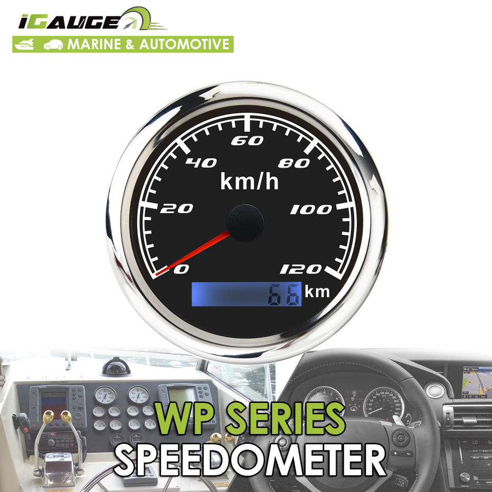 85mm Electrical 120 KMH Black Face White LED Blacklight Speedometer with Odometer for Boat Marine