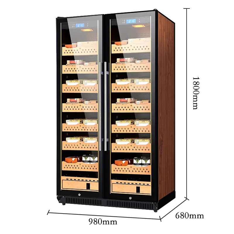 860L Commercial Double Glass Door Box with Black Cedar and Lock Cigar Cabinet