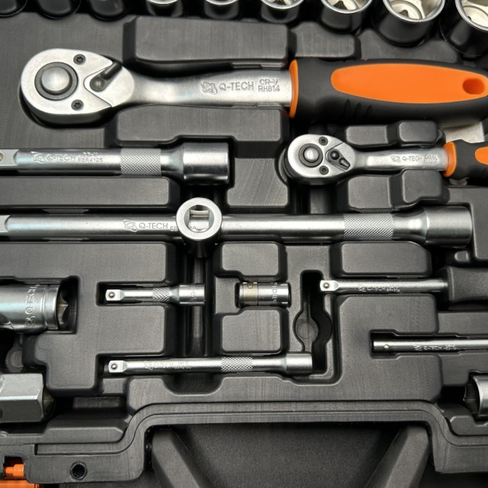 87-Piece OEM DIY Grade Automotive Tool Kit 1/2" 1/4"DR Ratchet Wrench Spanner Impact Sockets Sleeve Square Socket Cr-V Metric