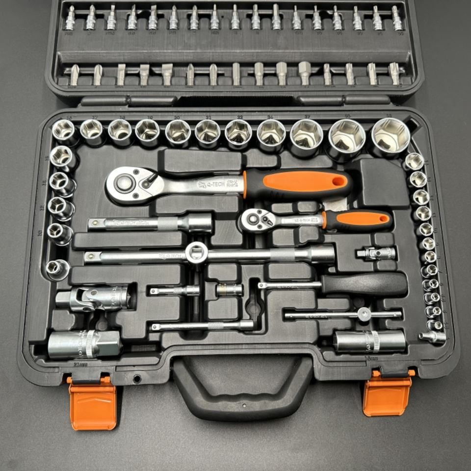 87-Piece Ratchet Handle 1/2" and 1/4" Drive Socket Wrench Set Mechanic Tool Set for Manual Use on Automobiles & Trucks