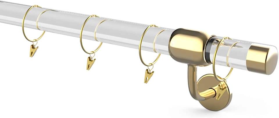 8FT Acrylic Curtain Rod Set for 96"windows/1/2" Diameter clear Acrylic Curtain Rod with Twenty Curtain Rings/gold Wall Brackets