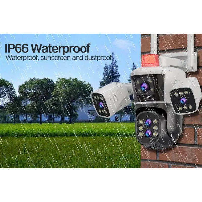 "8K Outdoor Wireless Security Camera with 10x Optical Zoom 16MP 360-Degree PTZ Four-Lens Three Screens"
