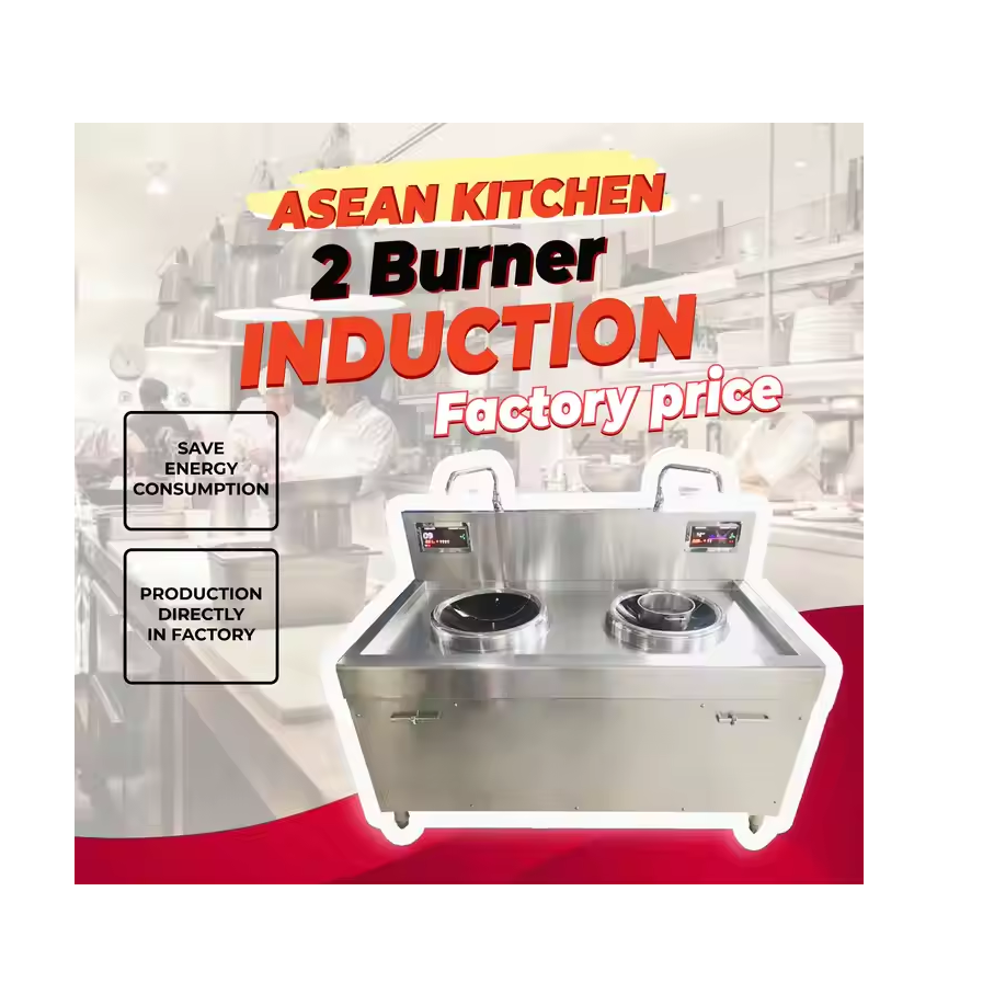 8KW/3P 2-Burner Induction Wok Range for Vietnam Cheap Price Top Hotels Kitchen Machines 800 x 800/1100 1-Year Warranty