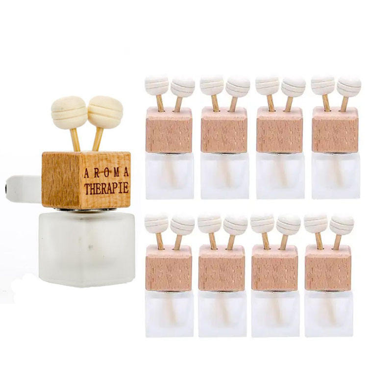 8ML Empty Square Clear Frosted Glass Car Air Freshener Diffuser Bottle With Wooden Cap