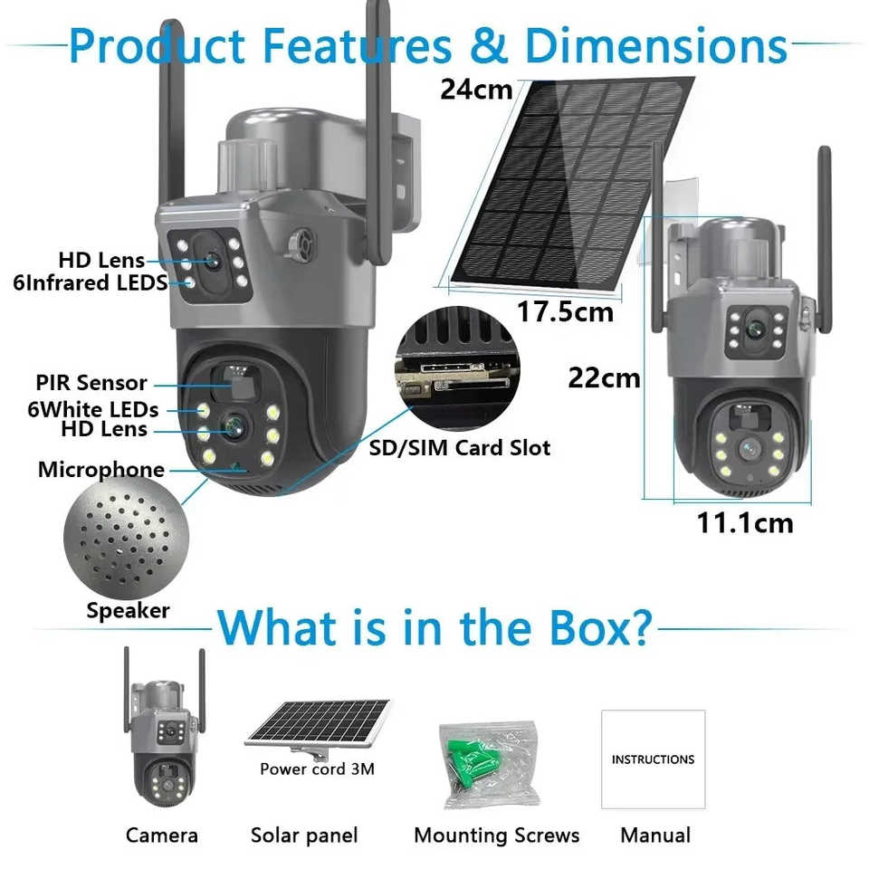 8MP Solar CCTV Camera with 4G PTZ PIR Alarm and IP65 Low Power Night Vision for Outdoor Use