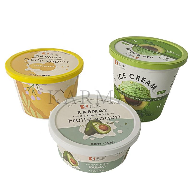 8OZ 250ml Round Cheese Cake Plastic Tub Sour Pudding Ice Cream Box Cheese Cream Packaging Container IML Printed and Sealing Film