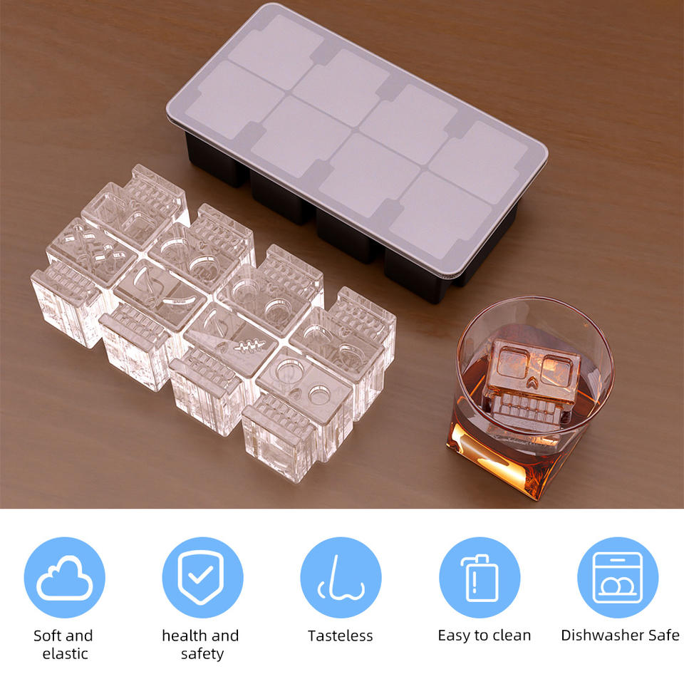 8Pcs Skull Ice Cream Tool Ice Mold Reusable Eco-Friendly Silicone Ice Cube Tray for Beer Water Dishwasher Safe Custom