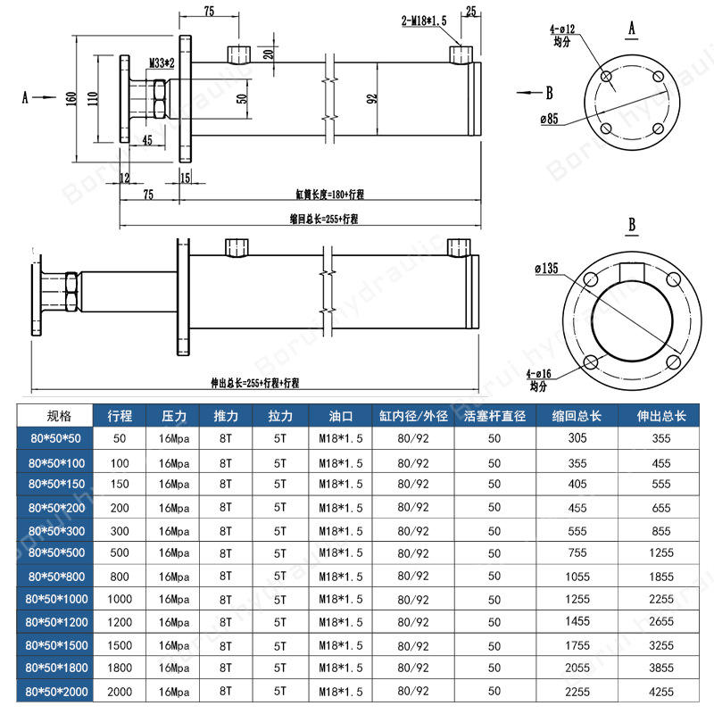 8T Upper Flange Hydraulic Cylinder 8-ton Thrust 80mm Diameter for Lifting Equipment Stock Available
