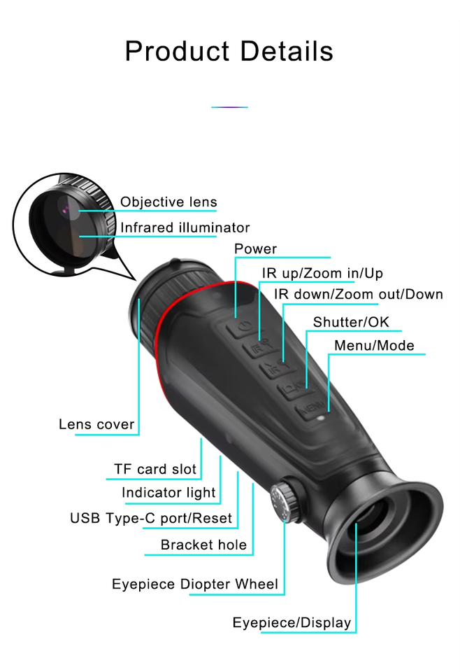 Feature:Waterproof, Shockproof, Lightweight, Portable, Adjustable, Durable, HD, Infrared, LONG RANGE