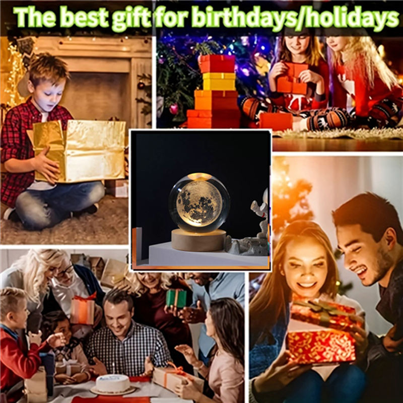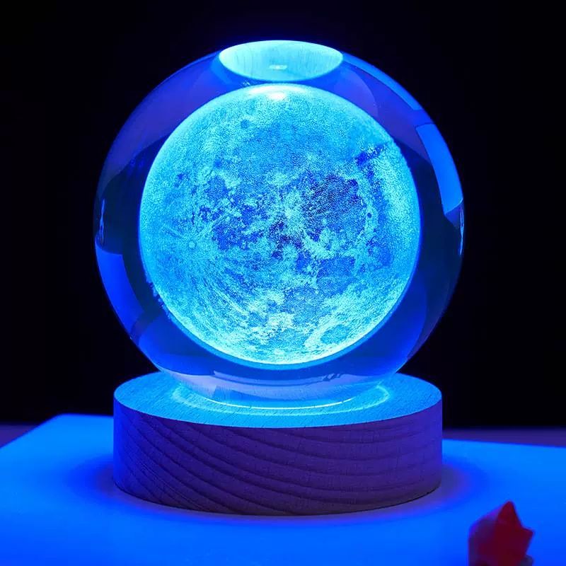 8cm 3D Crystal Ball Crystal Planet Night Light Laser Engraved Solar System Globe Astronomy Birthday Gift Home Desktop Decoration