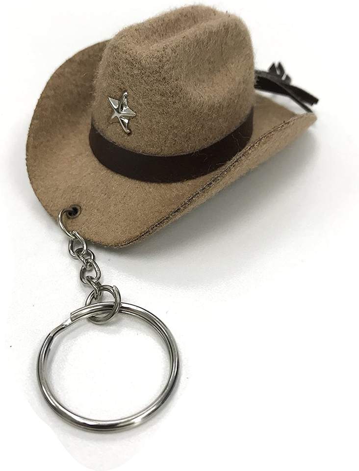 8cm Mini Small Straw Suede Leather Denim Hat Keychain Explosion-Proof Keychain Accessories with Five-Pointed Star Decoration
