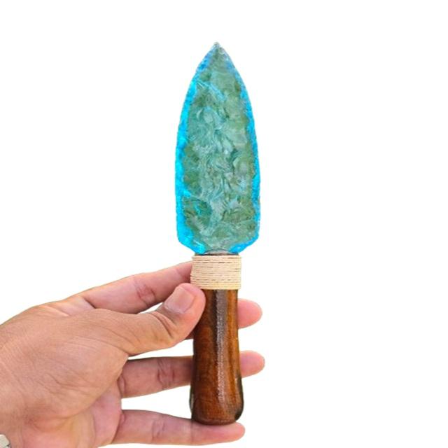 8inch AQUA BLUE obsidian Arrowhead Handmade Crystal Blade with Wood Handle Ritual Dagger Spiritual Altar Decor Collector Gift