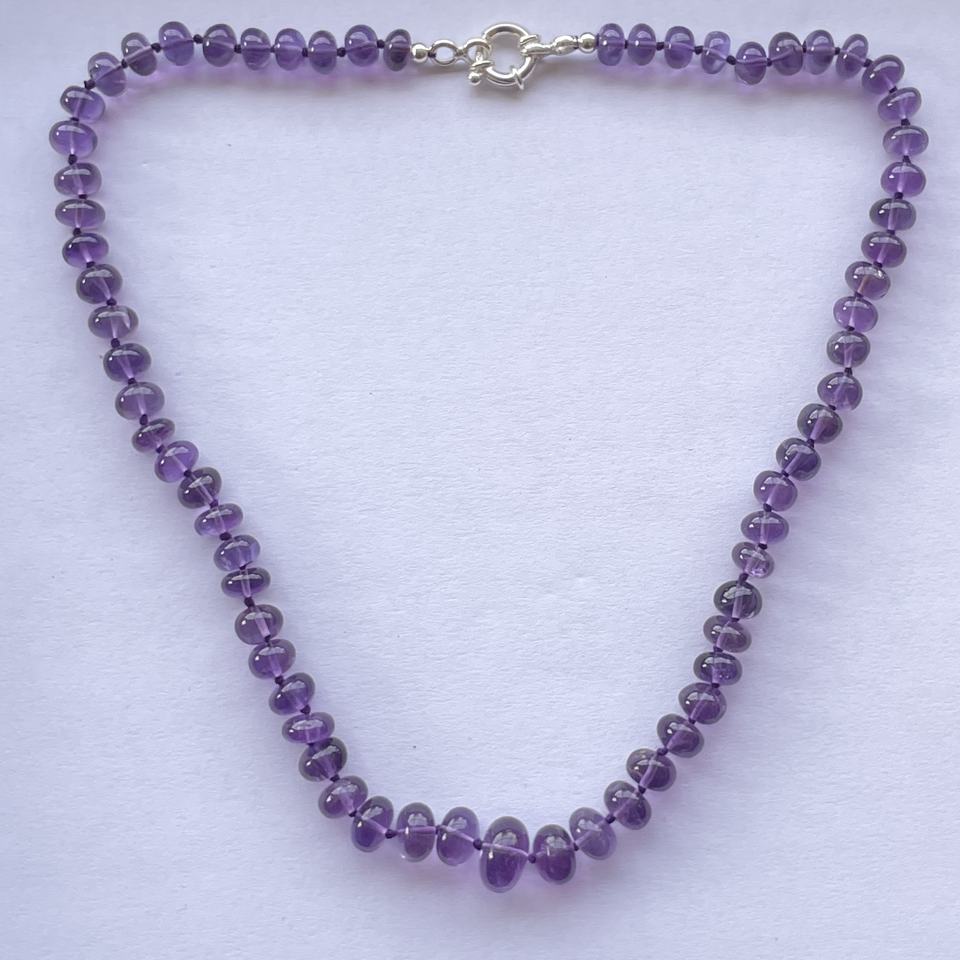 Product Name:Natural Brazil Amethyst Hand Knotted Smooth Rondelle Beads Necklace