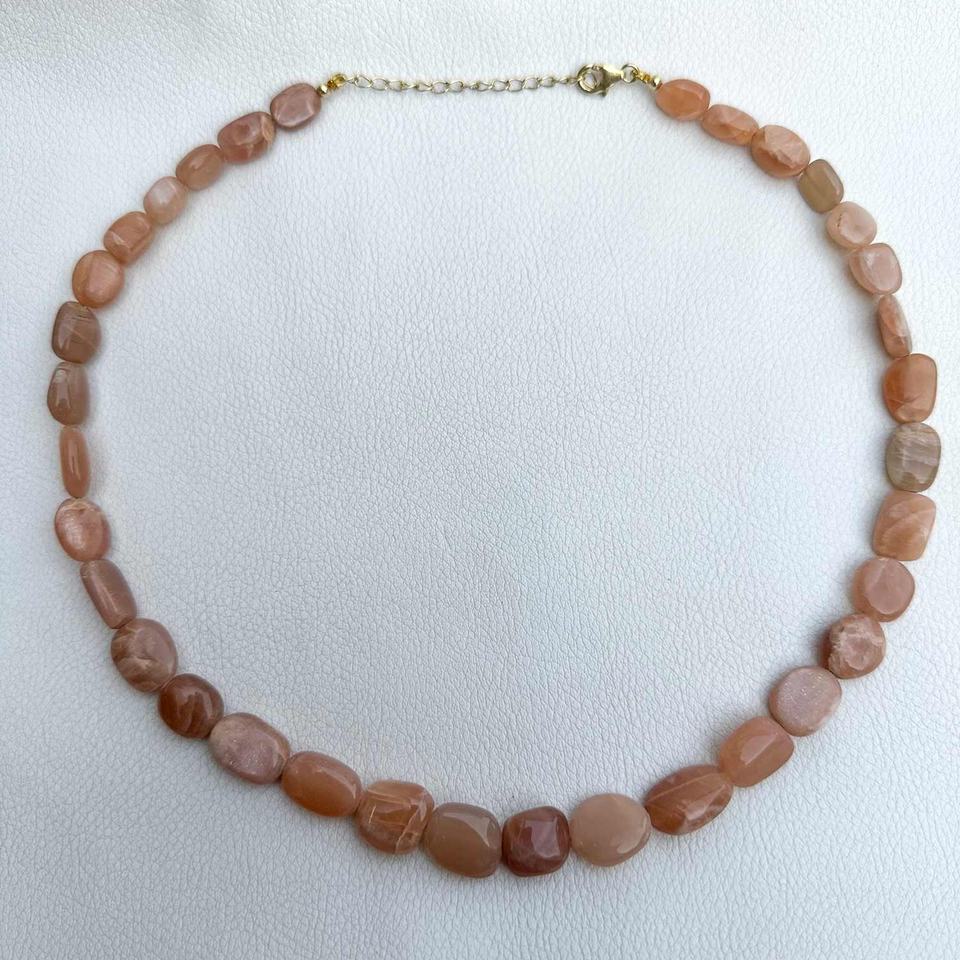 8mm-16mm Natural Peach Moonstone Smooth Tumble Stone Beads Necklace High Quality Gemstones Sterling Silver Jewelry Best Dealer