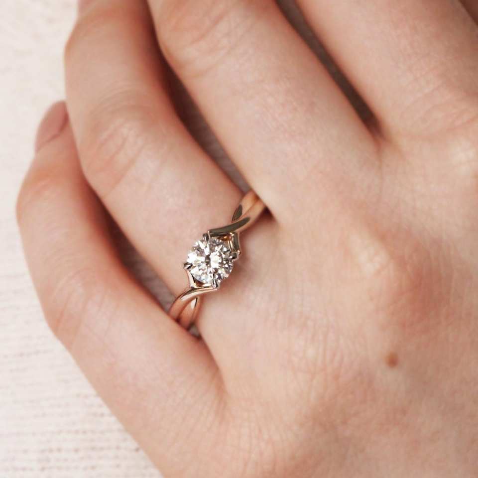 8mm Moissanite Diamond Engagement Ring | Twisted Band Solitaire 18K Gold Plated Sterling Silver | Minimalist Bridal Wedding