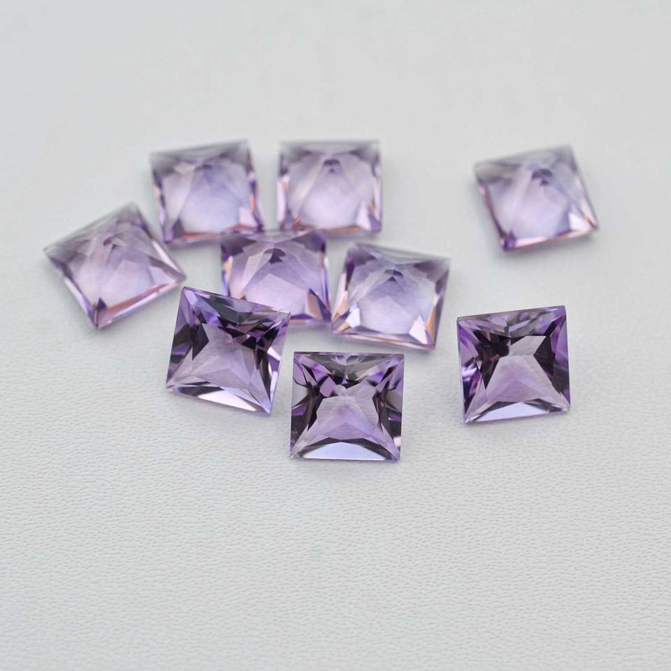 8mm Natural Light Pink Amethyst Faceted Square Shape Gemstone Princess Cut Amethyst Pendant Bracelets Necklace DIY Accessories