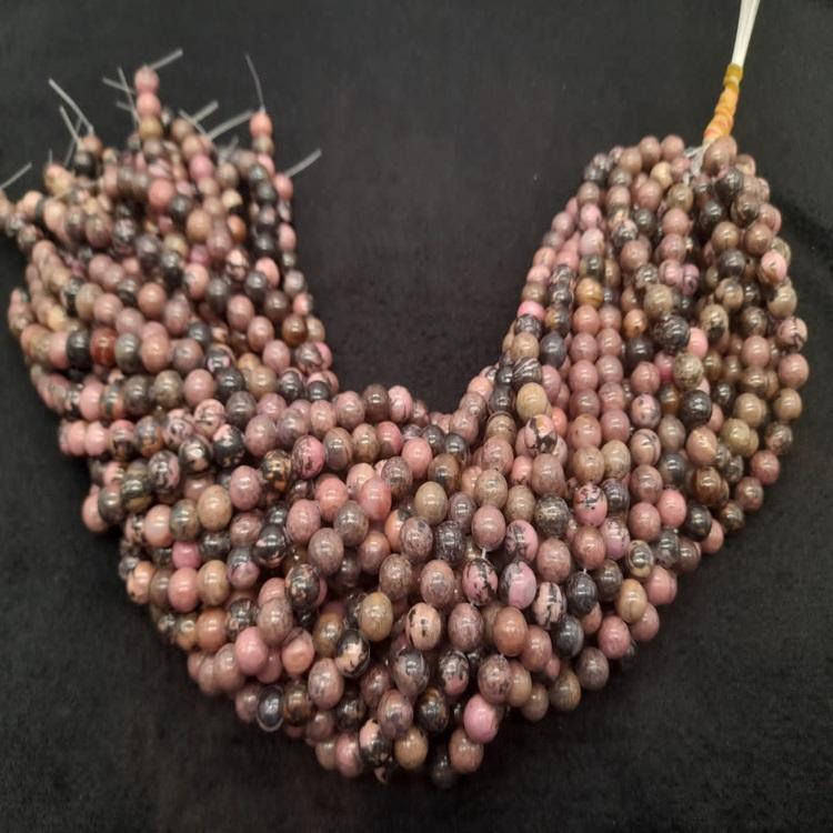 8mm Natural Rhodonite Crystal Agate Bead Strands Semi-Precious Stone Carved for Healing Crafts Gemstone Material