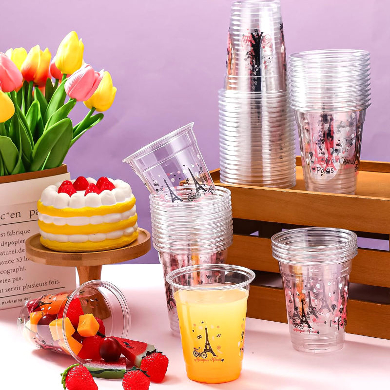 8oz 10 12 16 24 32 oz Custom Logo Square PE Disposable Eco Friendly Clear Plastic Cups with Lids for Coffee & Dessert