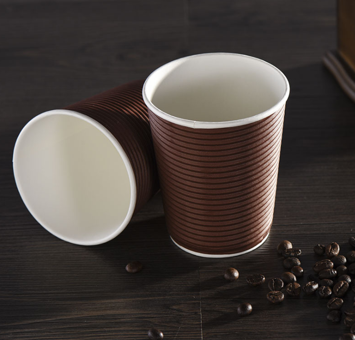 8oz 12oz 16oz Triple Wall Customized Design Ripple Paper Cups Corrugated Wall Paper Coffee Cups