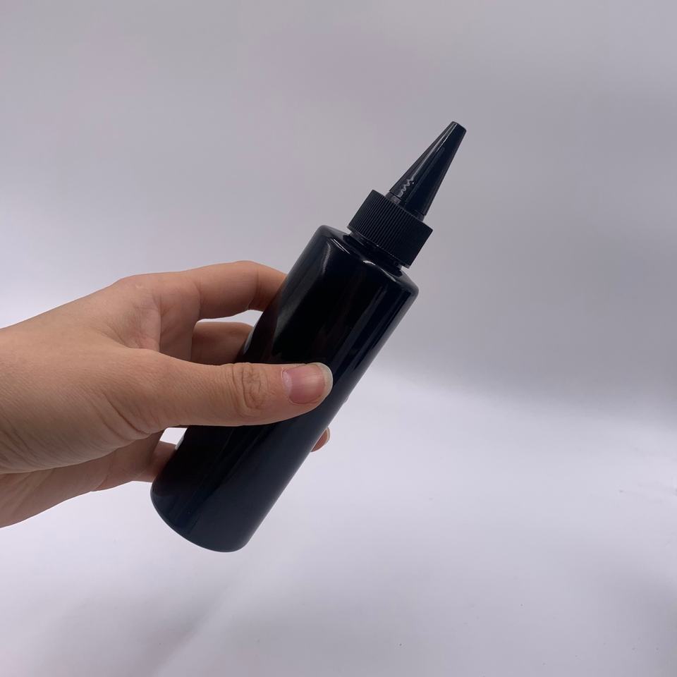 8oz Black Plastic Cosmetic Container 250ml PET Empty Hair Oils Bottles with Nozzle Empty Squeezable Applicator Dispensing