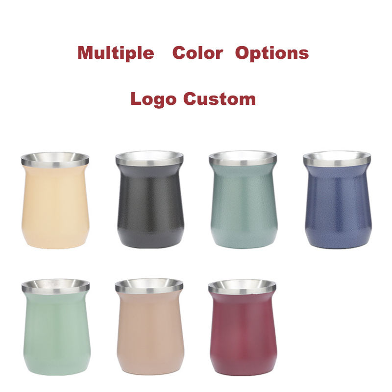 8oz Mate Cup Tea Mugs Double Walled Insulated Tumbler Stainless Steel Yerba Gourd Cup With Straw Sets