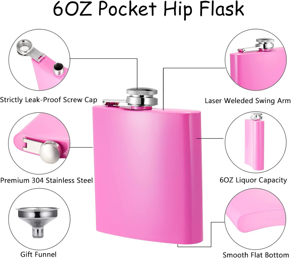 8oz Pink Blue Gold & Black Stainless Steel Hip Flask Set 240ml Whiskey & Alcohol Drinkware Party Gift for Men & Women