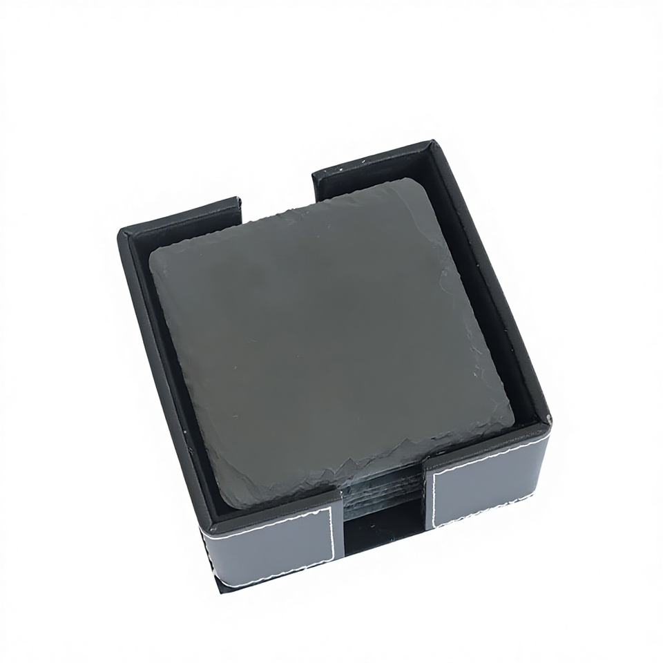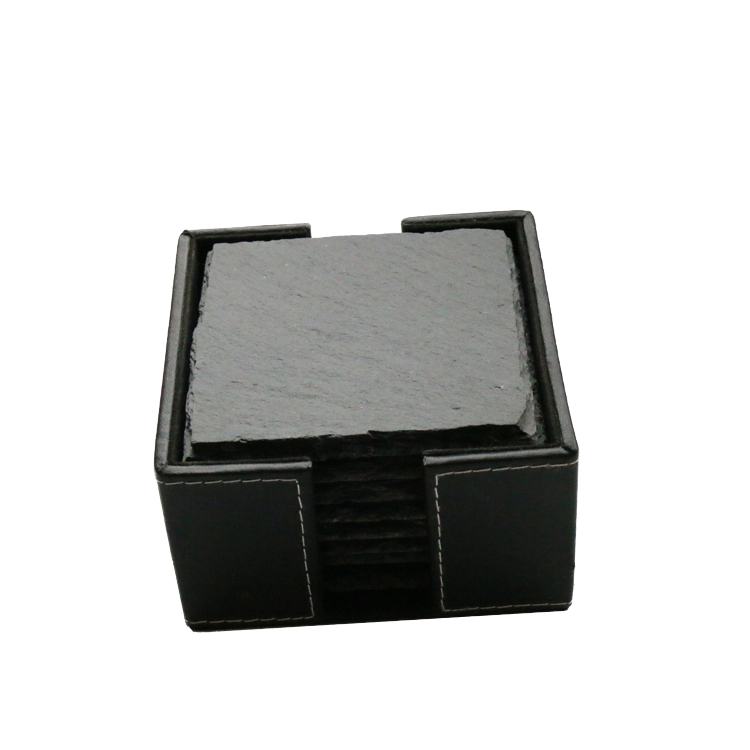 8pcs Modern Eco-Friendly Natural Stone Black Slate Square Coaster PU Leather Holder Slate Pencil Home Mate Brand for Christmas
