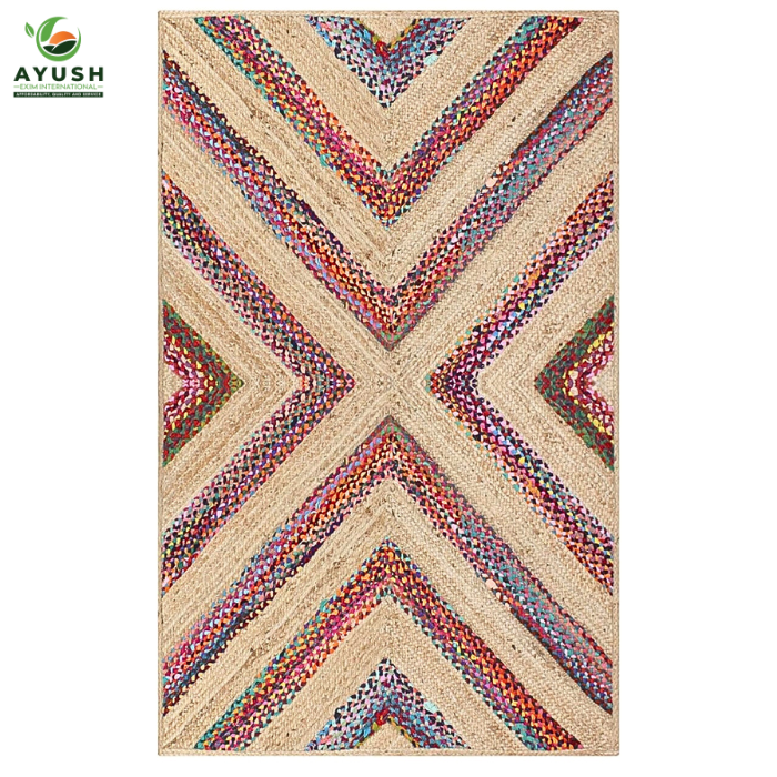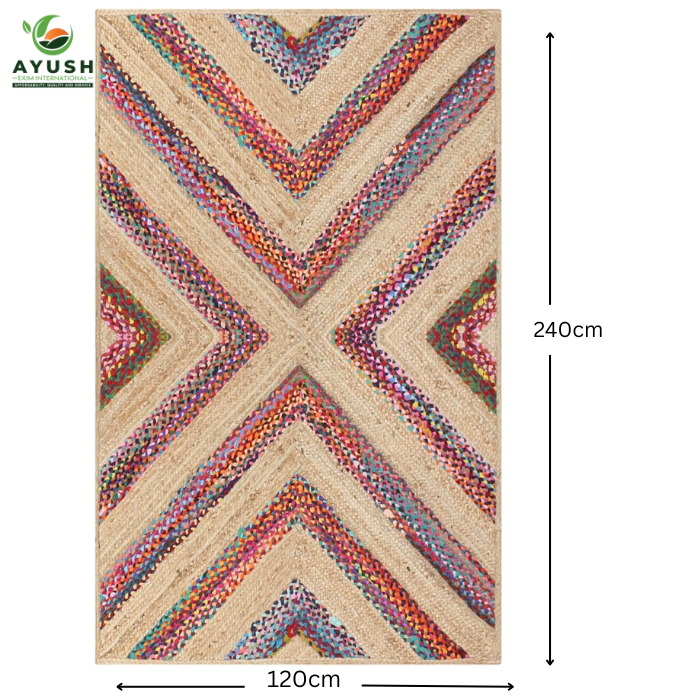 8x10 bedroom rug made of Jute fibers and denim fabrics 100% hand braided with customization options for home & events