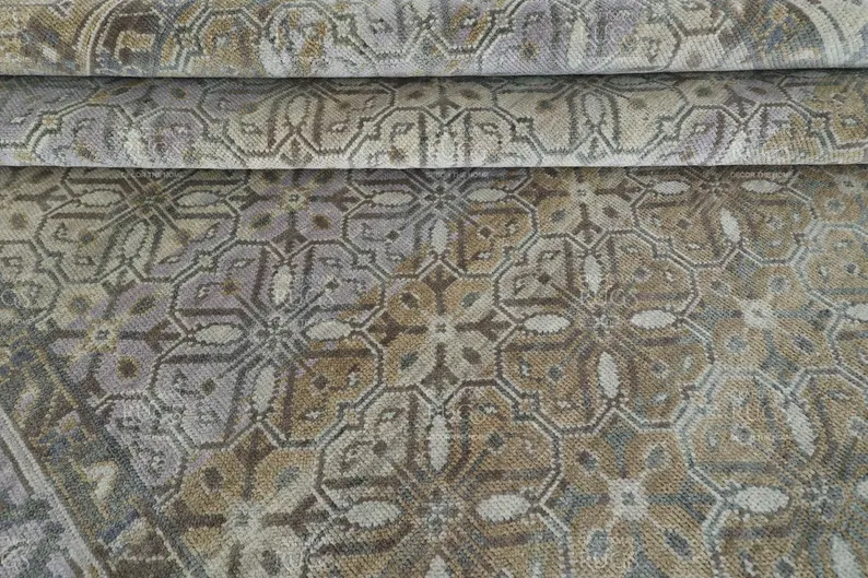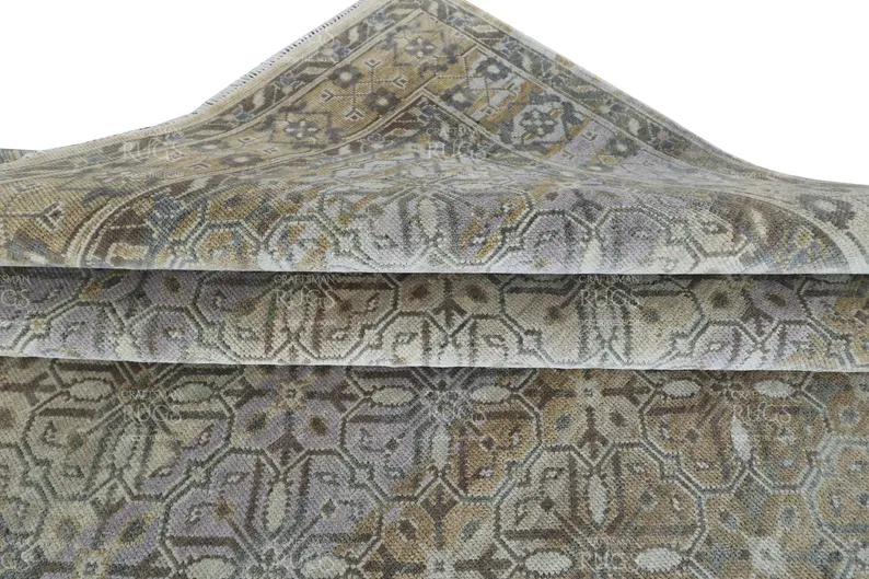 8×10 Artisan Crafted Oushak Wool Area Rug with Mosaic Geometry and Soft Transitional Aesthetic for Living Space