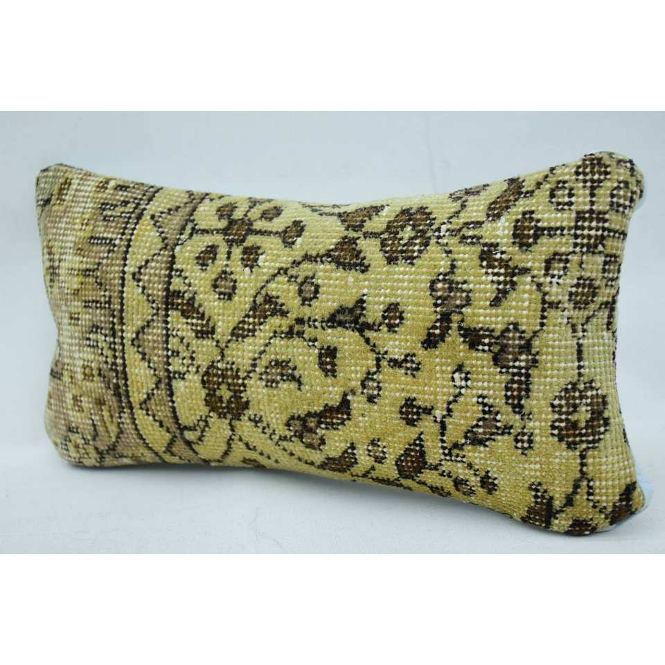 8x16 Inch Gold Kantha Pillow with Vintage Leopard Print Woven Decorative Accent Wool Material