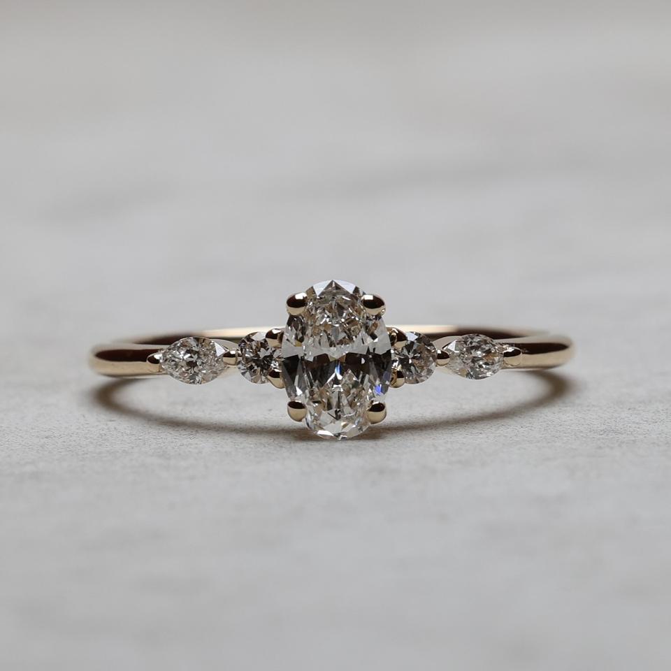 8x6mm Oval Cut Moissanite Engagement Ring with Vertical Accent Stones | Unique Dainty Bridal Jewelry