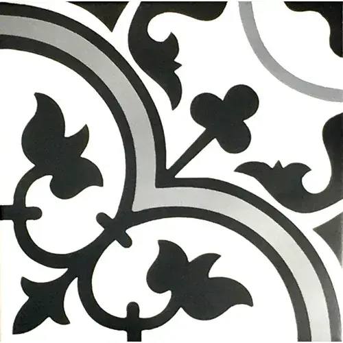 8x8 Flora Gray Black White Encaustic Design Satin Glaze Ceramic Tile Accessory 1 PIECE ORDER