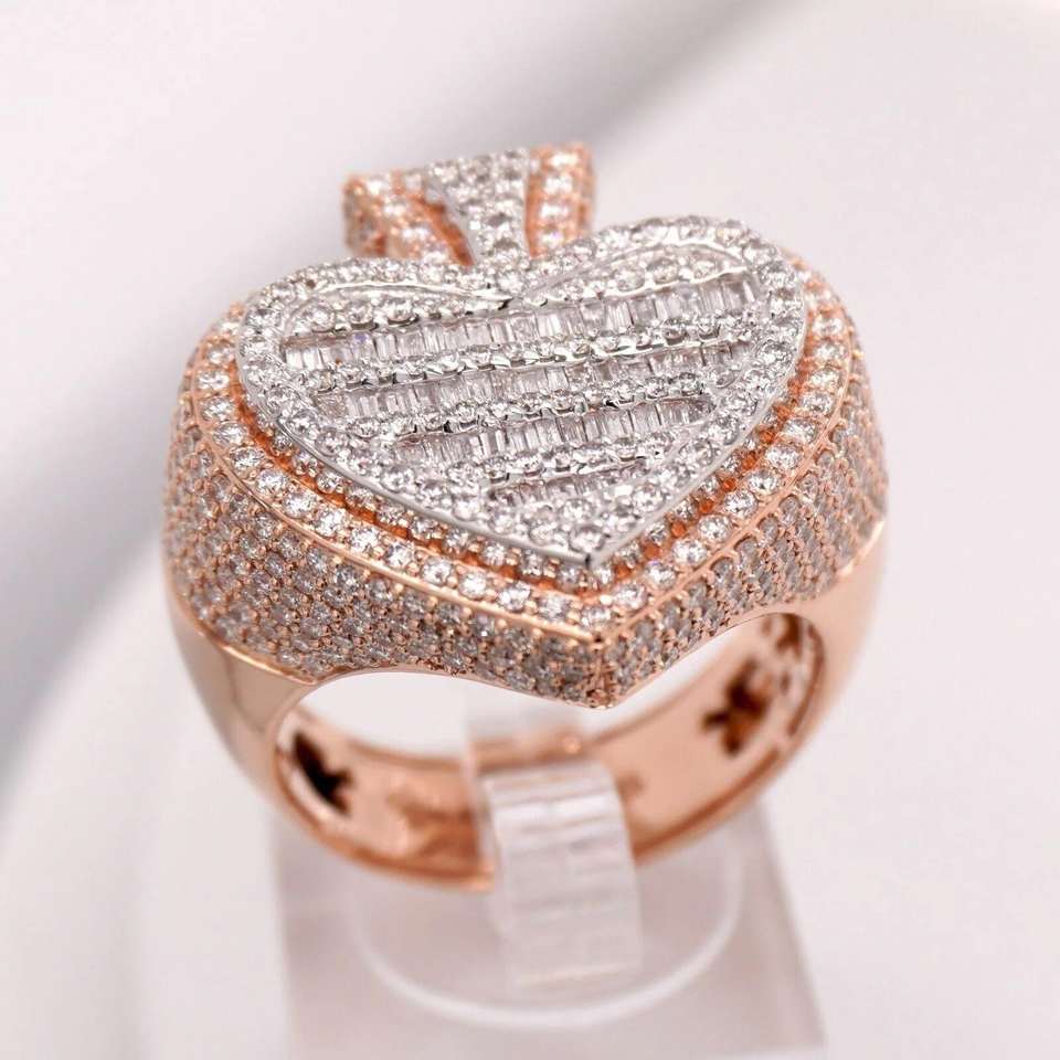 9.00Ct Ice Out VVS Moissanite Rose Gold Round & Baguette Cut Diamond Hip Hop Anniversary Ring Men's 925 Sterling Silver