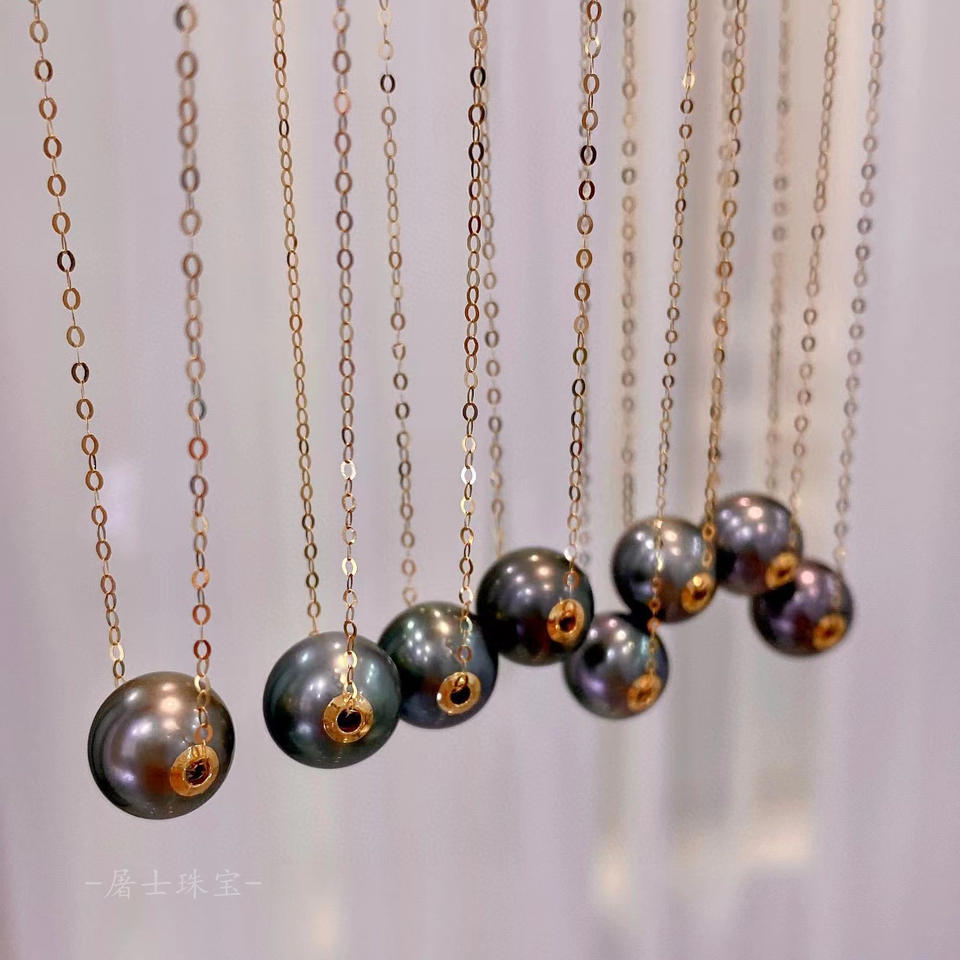 9-10mm Natural Tahiti Seawater Pearl Pendant 18K Gold Strong Light Black Roadside Necklace with 925 Sterling Silver