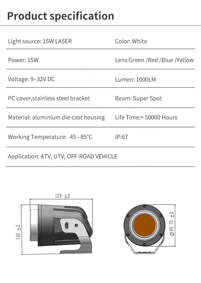 Product name:Boat Trailer Truck Mini LED Tail Rear Chase Spot Lamp Whipless Light
