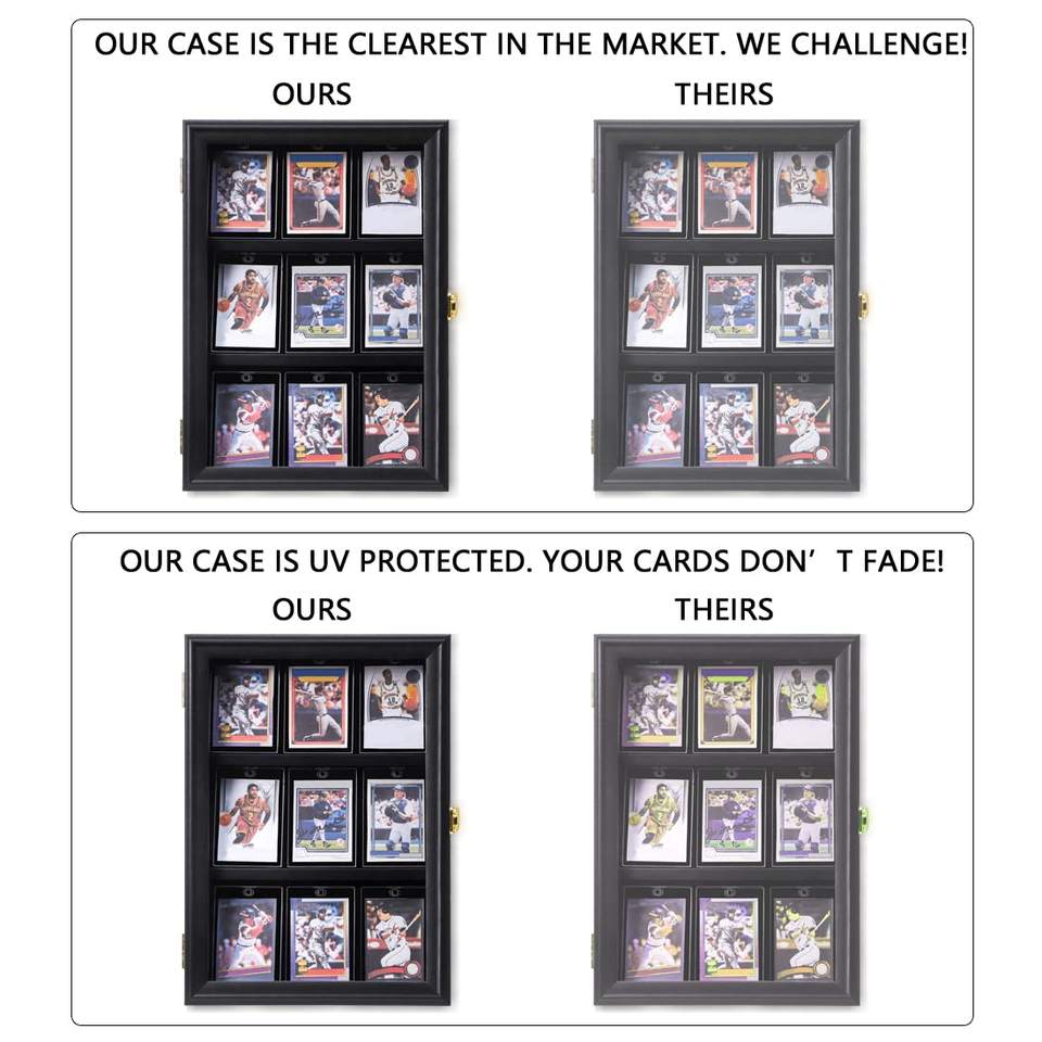 9 Graded Sports UV-Anti Acrylic Baseball Card Display Case Rectangle Frame with Removable Shelves for Card Collection