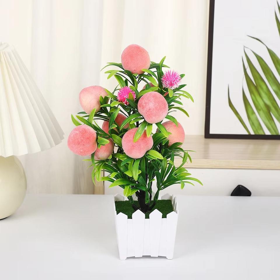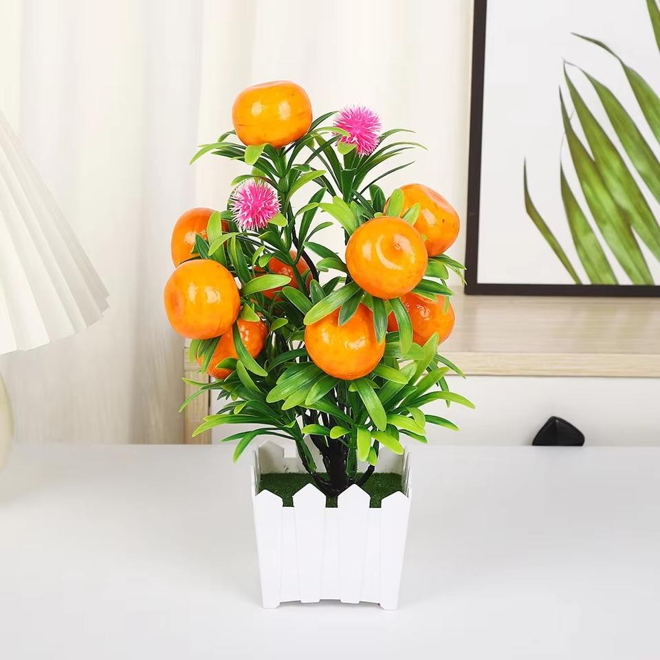 9-Head Large Fruit Bonsai Fence Artificial Potted Fruit Ornaments Plastic Tree Decorative Plants in Small Plastic Pot