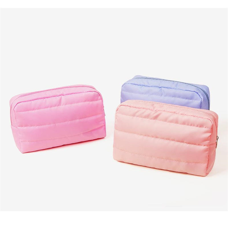 9 Inch Nylon Quilting Seam Cosmetic Bag for Women Waterproof Soft Puff Makeup Pouch Large Capacity Zipper Shiny Finish Letter