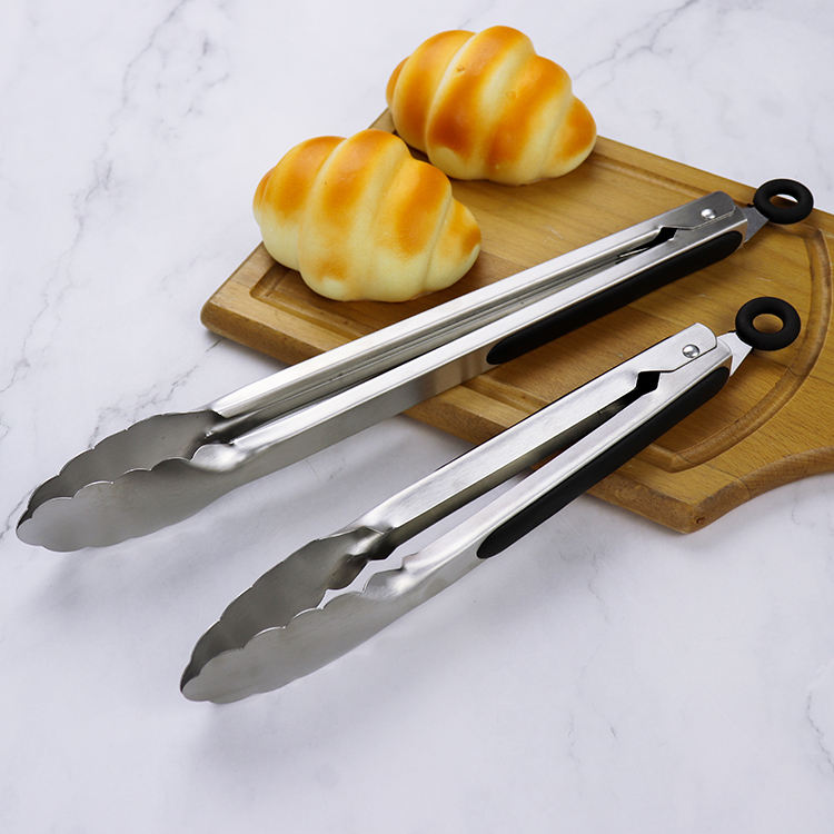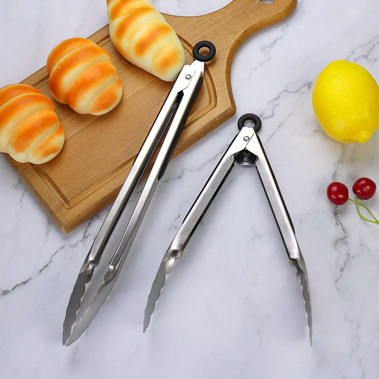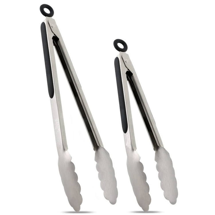 9 Inch and 12 Inch Stainless Steel Kitchen Tong Set Non slip Locked Serving Food Tong