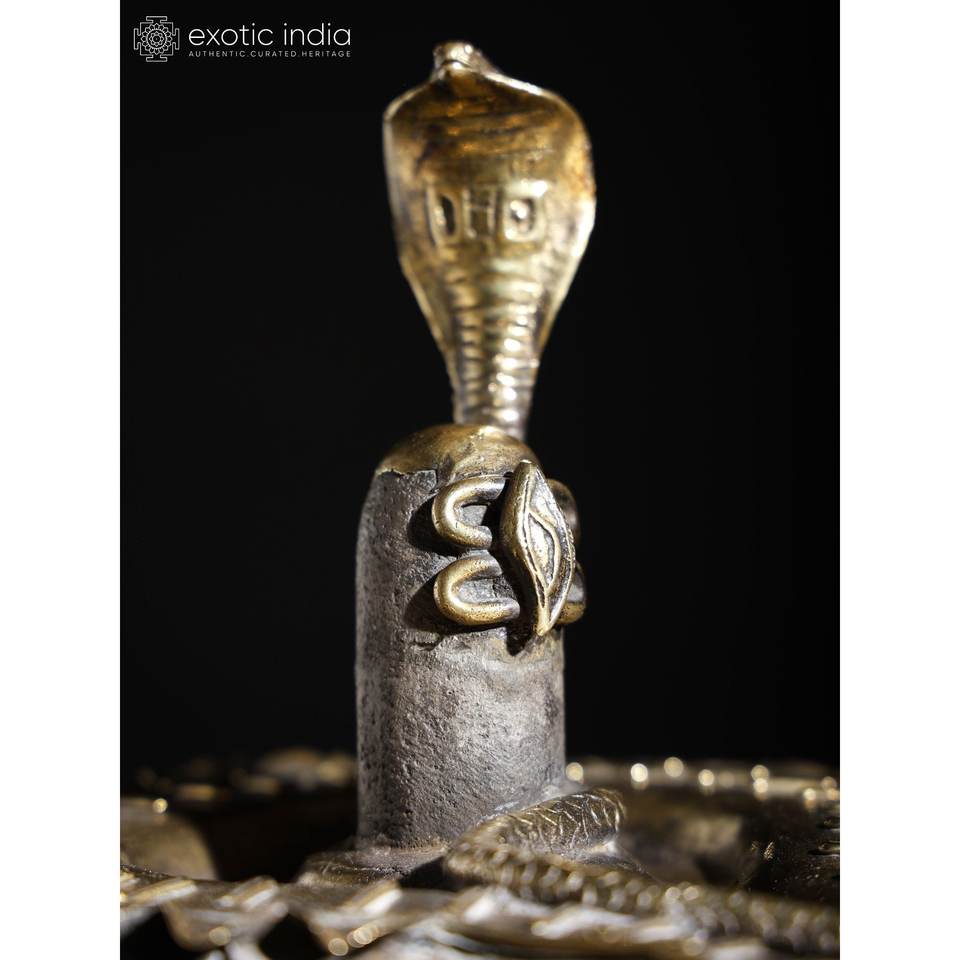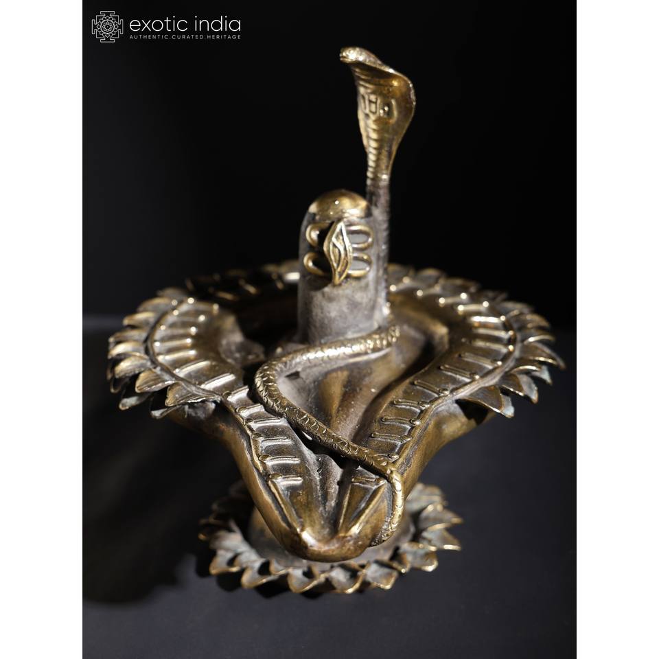 9 Inches Handmade Shiva Linga Brass Sculpture with Protective Naag for Shiva Temple and Gifting Made In India