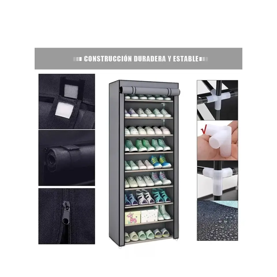 9-Level Extendable Iron Shoe Organizer Convertible Home Office Furniture Nonwoven Fabric 9 Metal Compartments Dark Grey