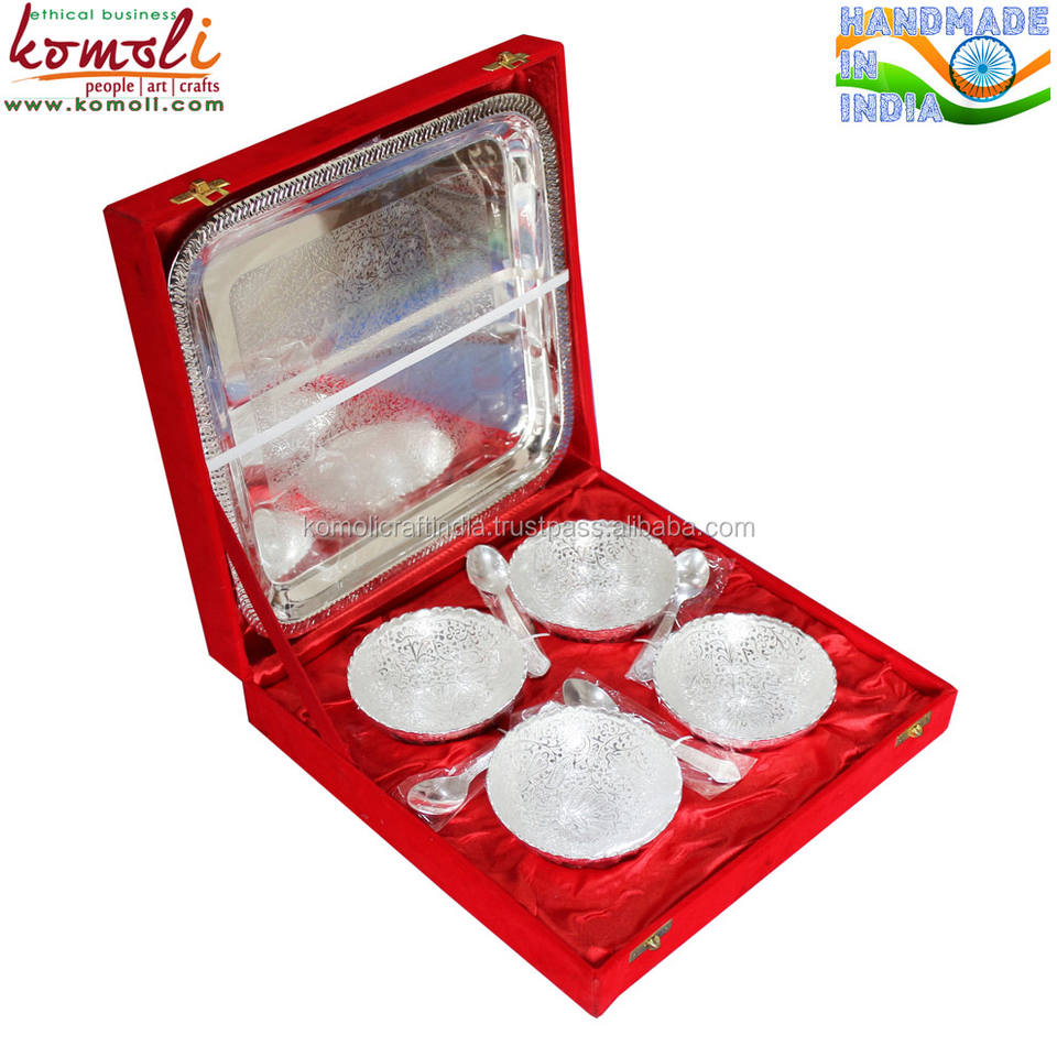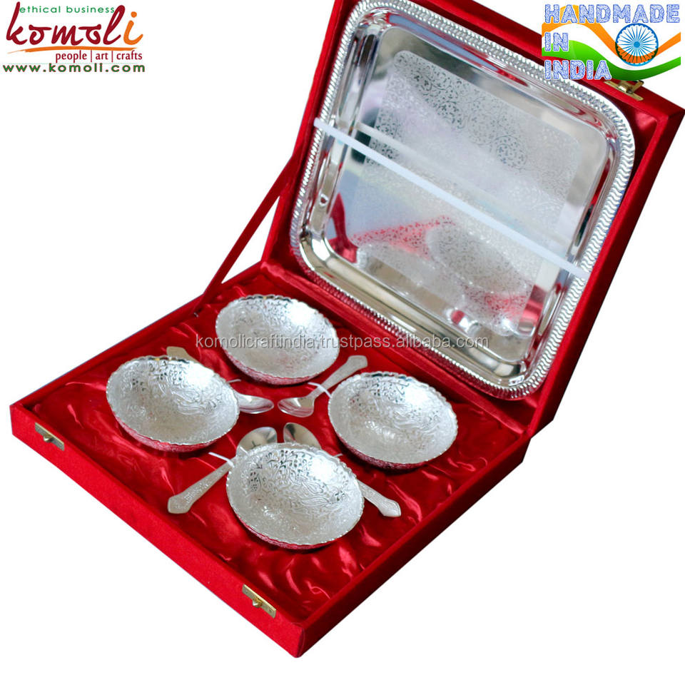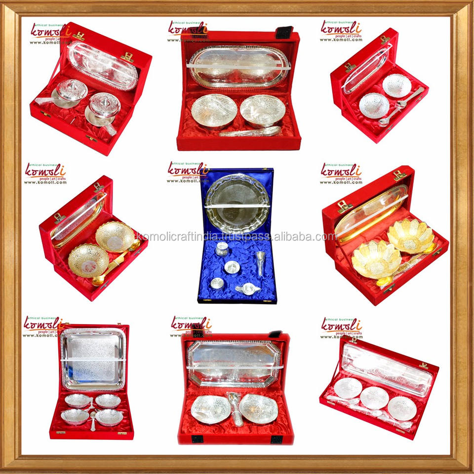 9 Piece Brass & Silver Bowl Set Elegant Indian Wedding Return Gift, Decorative Favors, Traditional Home & Festival Decor