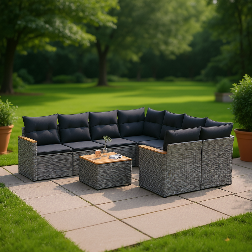 Modular Gray Pe Rattan Garden Sofa Set Modern Design Outdoor Furniture With Cushions Included