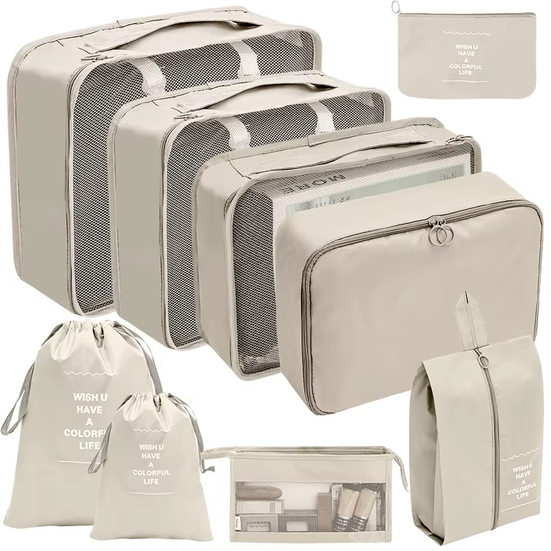 9 Piece PVC Set Fashion Cubes Suitcases Travel Luggage Packing Organizers Storage Bags Square Pattern