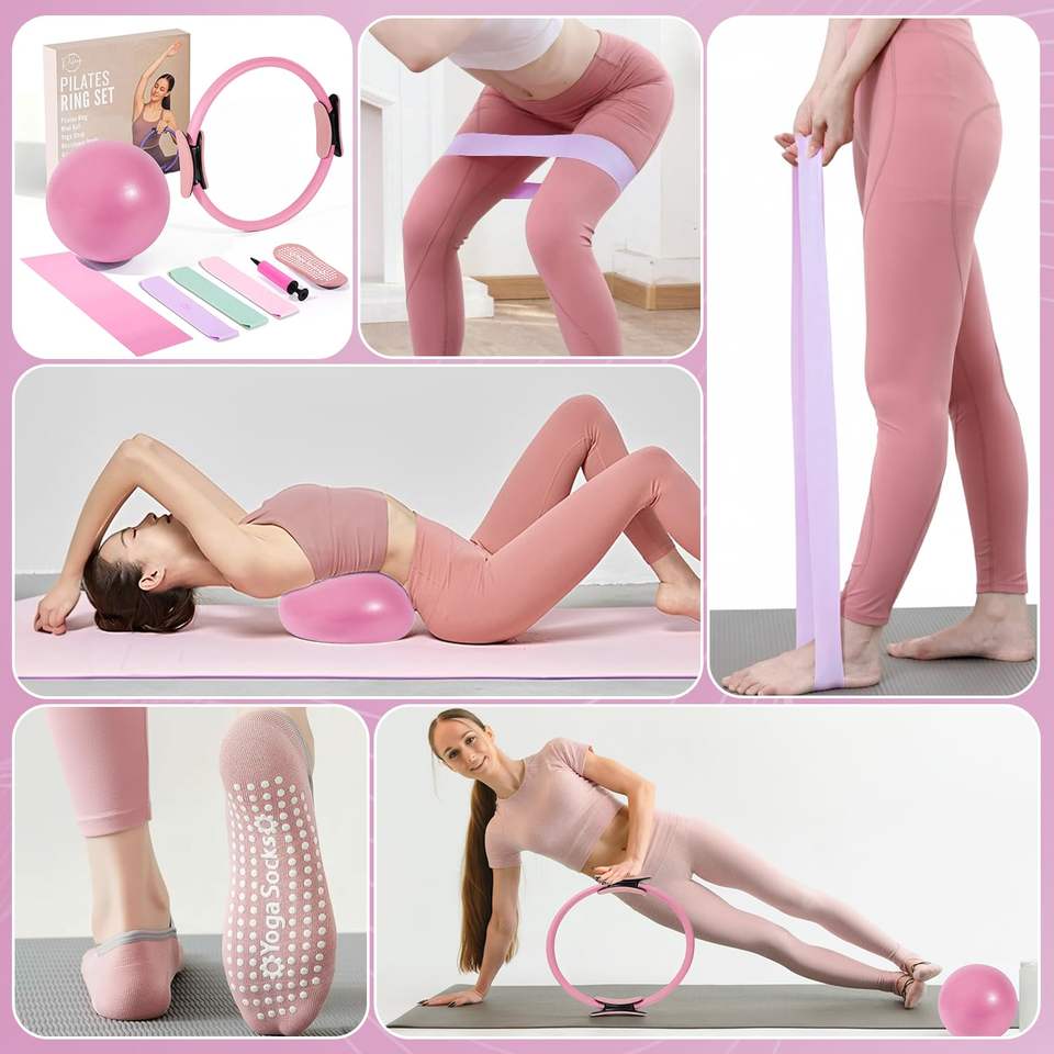 9-Piece Eco-Friendly Yoga Pilates Circle Set Fitness Kit Bag with Yoga Ball Resistance Bands Home Exercise Equipment