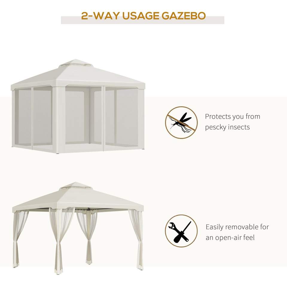 9 X 6x9 6 Cream White Gazebo with Sides 2-Tier Vented Roof & Mosquito Netting Drainage Holes for Patio Party Canopy & Pergola