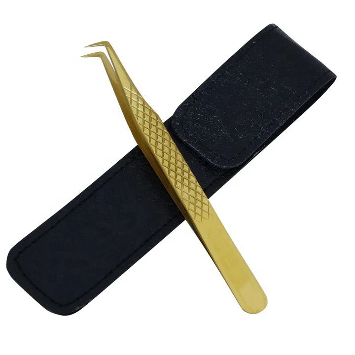 90 Degree Gold Extension Tweezers Set, Stainless Steel Professional Eyelash Extension Tweezers for Volume, Isolation and Classic