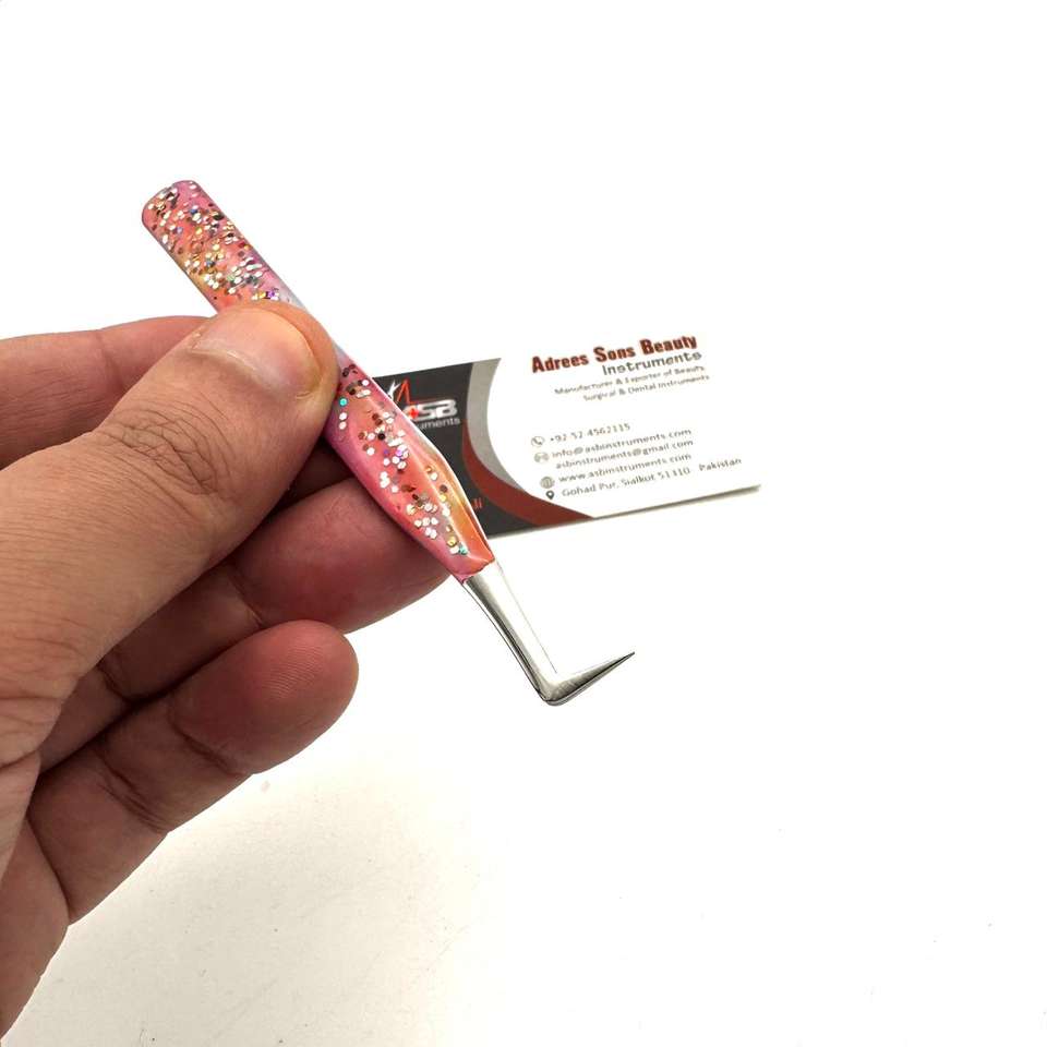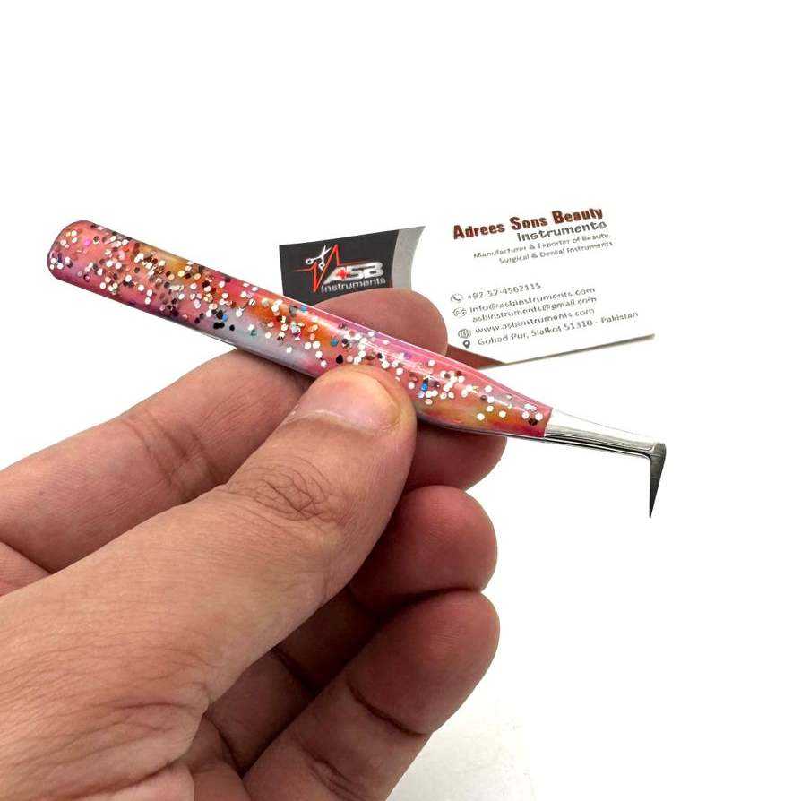 90 Degree Slim Boot Tweezers With Glitter Stainless Steel Customised Logo Printing Eyelash Extension Tweezer