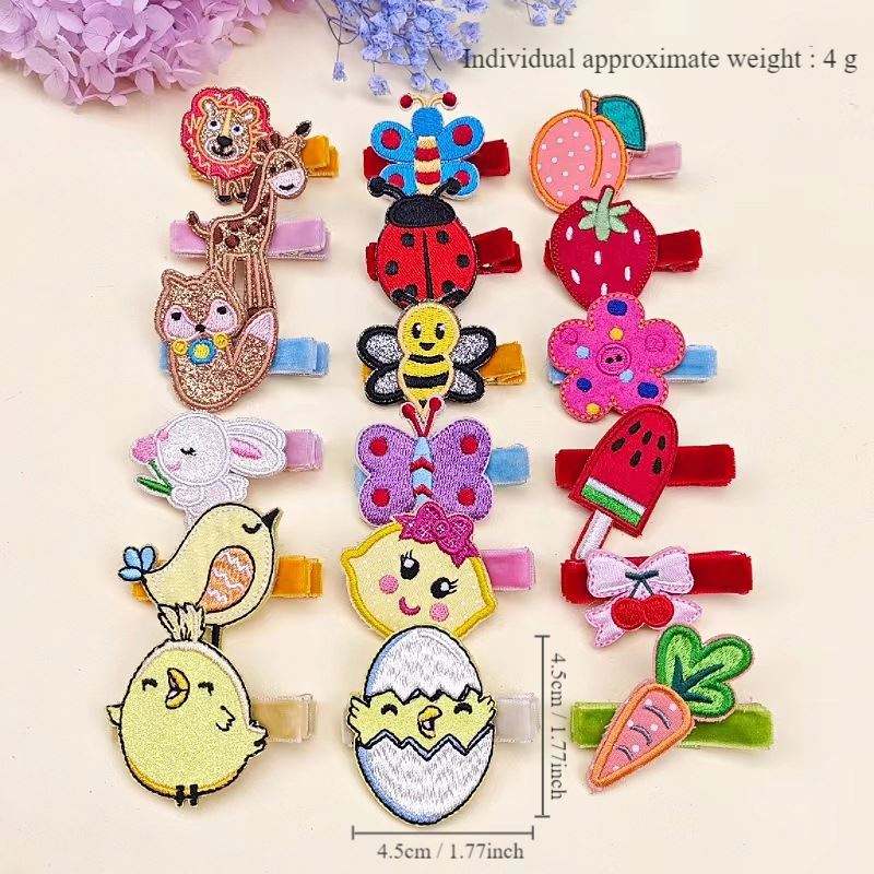 90201 Cute Animal Fruit Bow Hairpin for Children Non-Woven Embroidery Velvet Webbing Sweet Style Fabric for Party Occasions