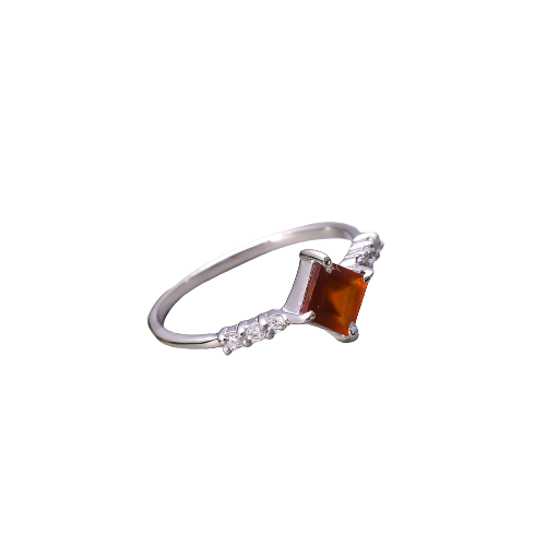 92.5 Sterling Silver 1.2 Gram Ring Natural Hessonite Garnet Square Shape Gemstone Latest Simple Religious Design Wholesale